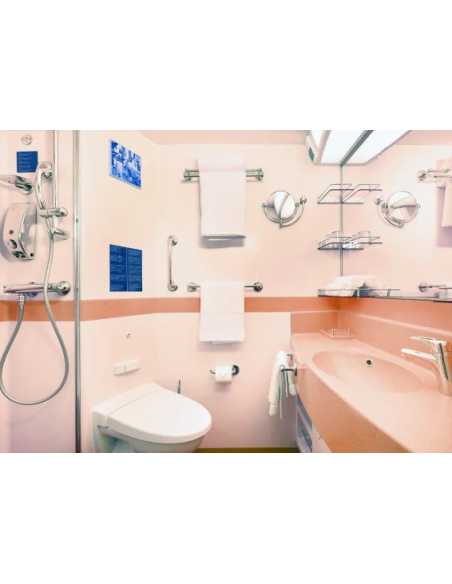 - Un lit double (ou deux lits simples), un canapé-lit. Dans le cas d’un 3e/4e client, deux lits rabattables en hauteur sont disponibles (matelas DORELAN).
