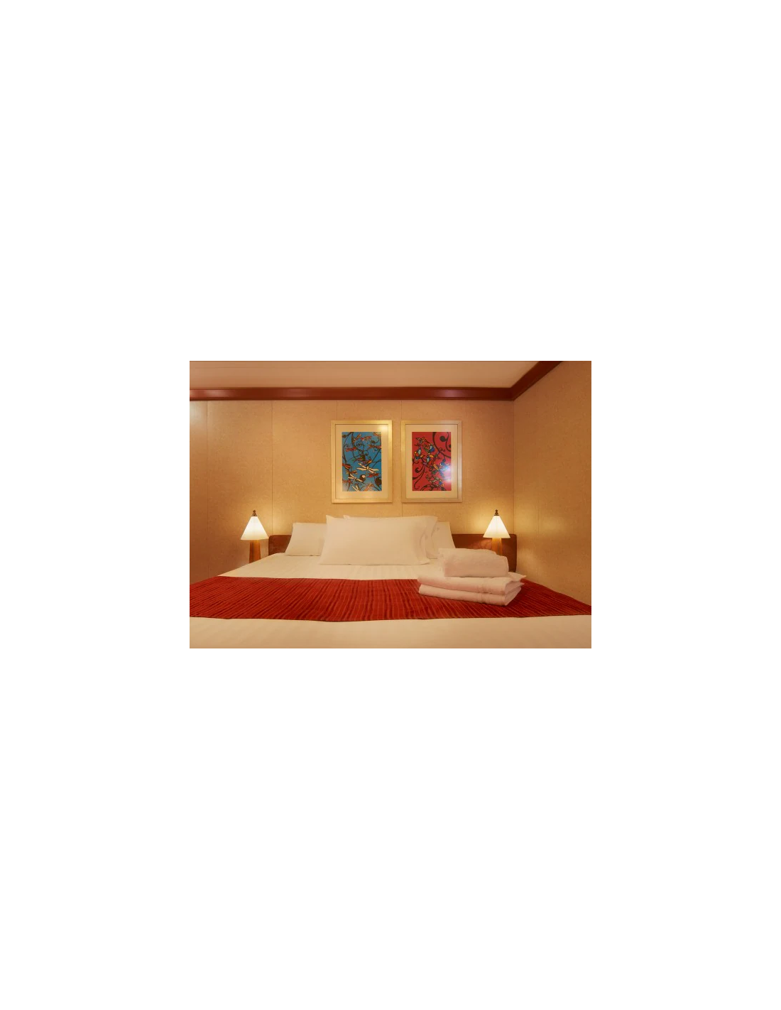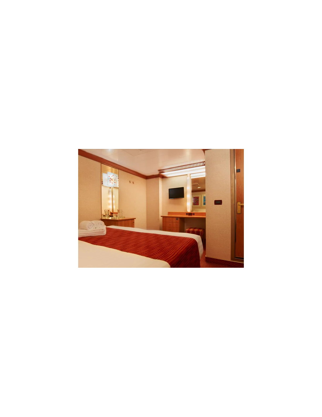 - Un lit double (ou deux lits simples). Dans le cas de 3e/4e client, deux lits rabattables en hauteur sont disponibles (matelas DORELAN).